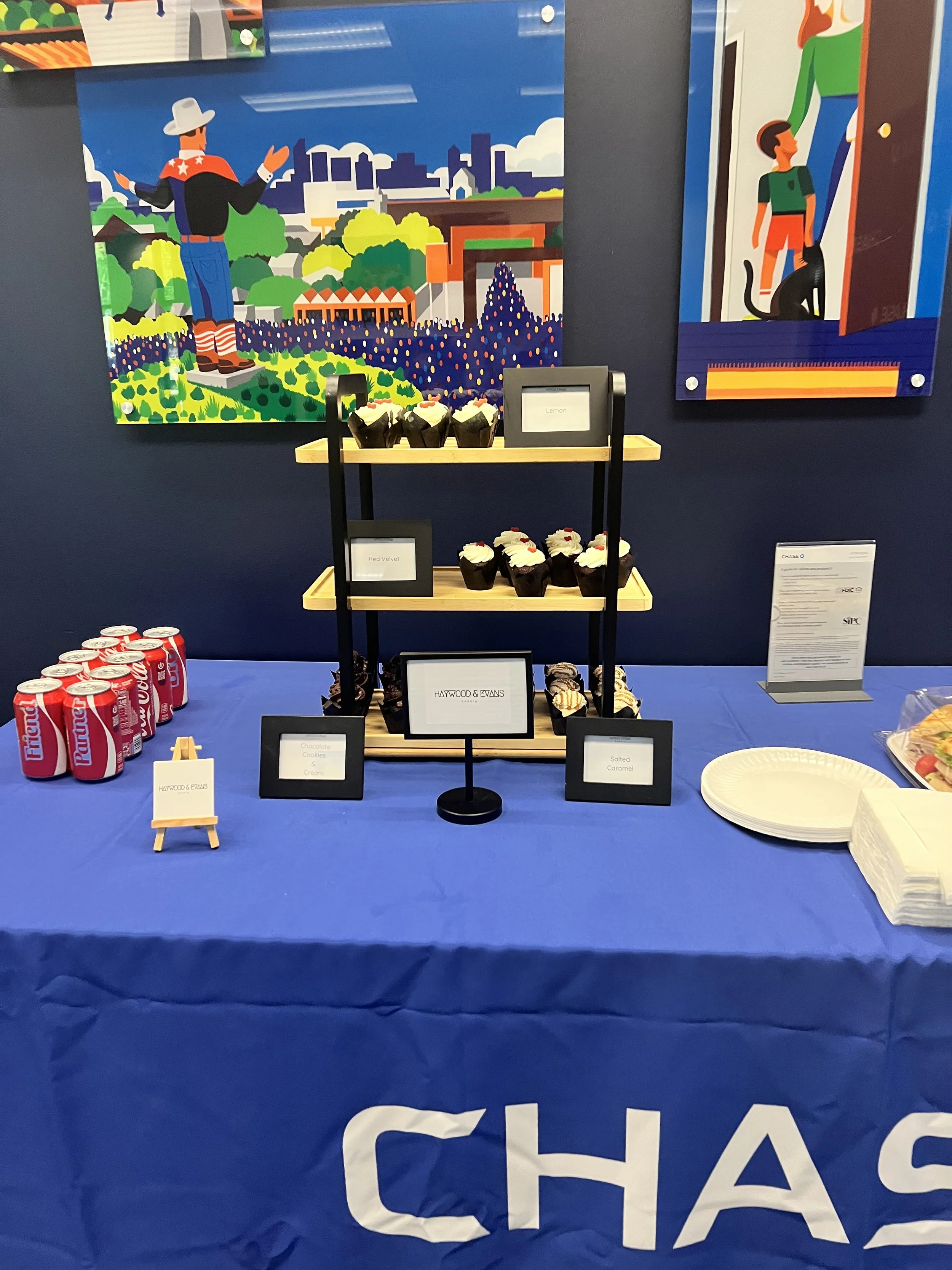 In April, Haywood & Evans had the honor of catering cupcakes for their local community event at Chase in Oak Cliff! We were able to share a little bit about our story and how our business came about. The concept of this event focused on “Who you should have in your toolbox?” The importance of having the right accountant, lawyer, and marketing team is imperative to ensure your business is maintaining the proper ins and outs of your business. We were able to also network and exchange contact information with other small businesses and set up for another event in May! Cannot thank the local community manager Omar Monsivais enough for allowing us to cater cupcakes for their community event!